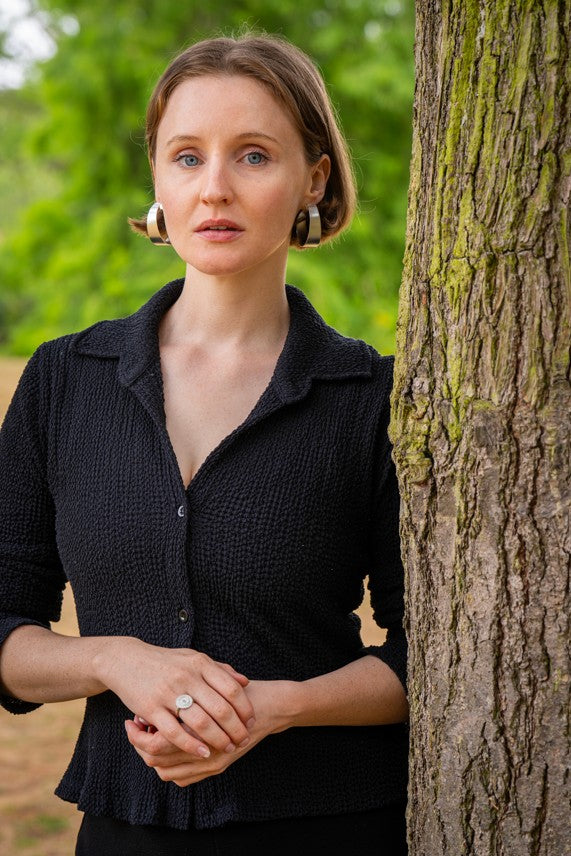Sleek yet intricate, these hoops reflect the precision of traditional craftsmanship with a modern, understated silhouette. The engraved surface catches light at every angle, offering a soft shimmer and subtle texture that speaks to quiet luxury.